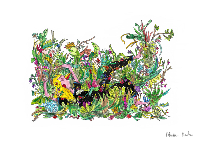 Tirage de l'œuvre originale "Sieste bucolique" réalisée à l'encre de chine et encres colorées - Blandine Manhes