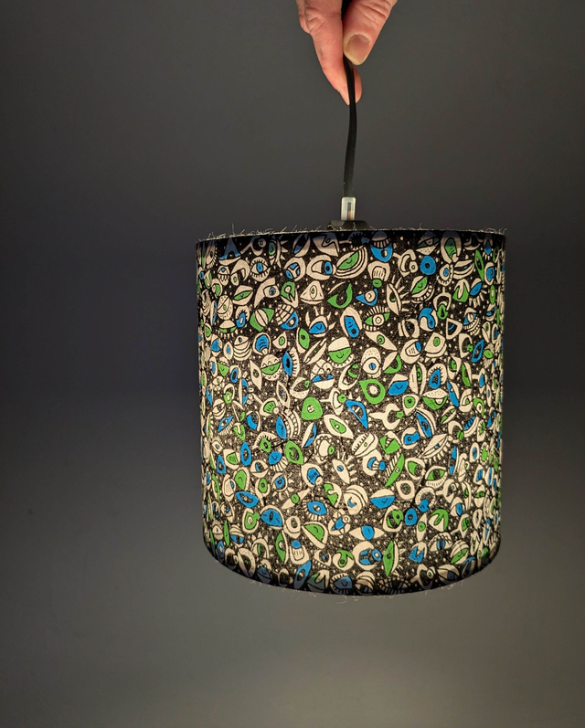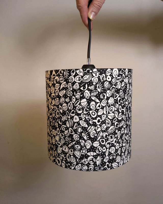 Motif original dessiné par Blandine puis sérigraphié par les Editions Comètes. Pierre réalise le montage à la main.